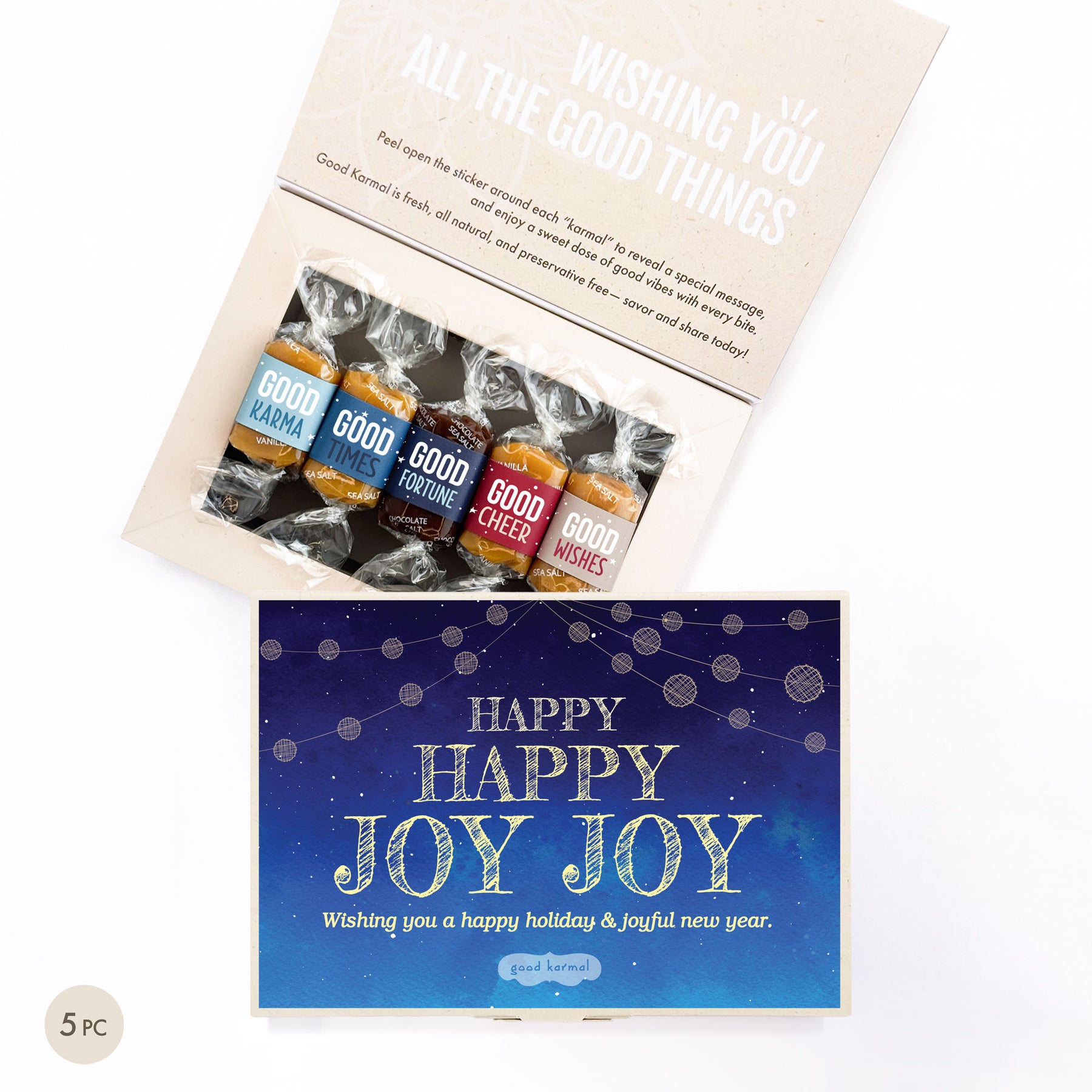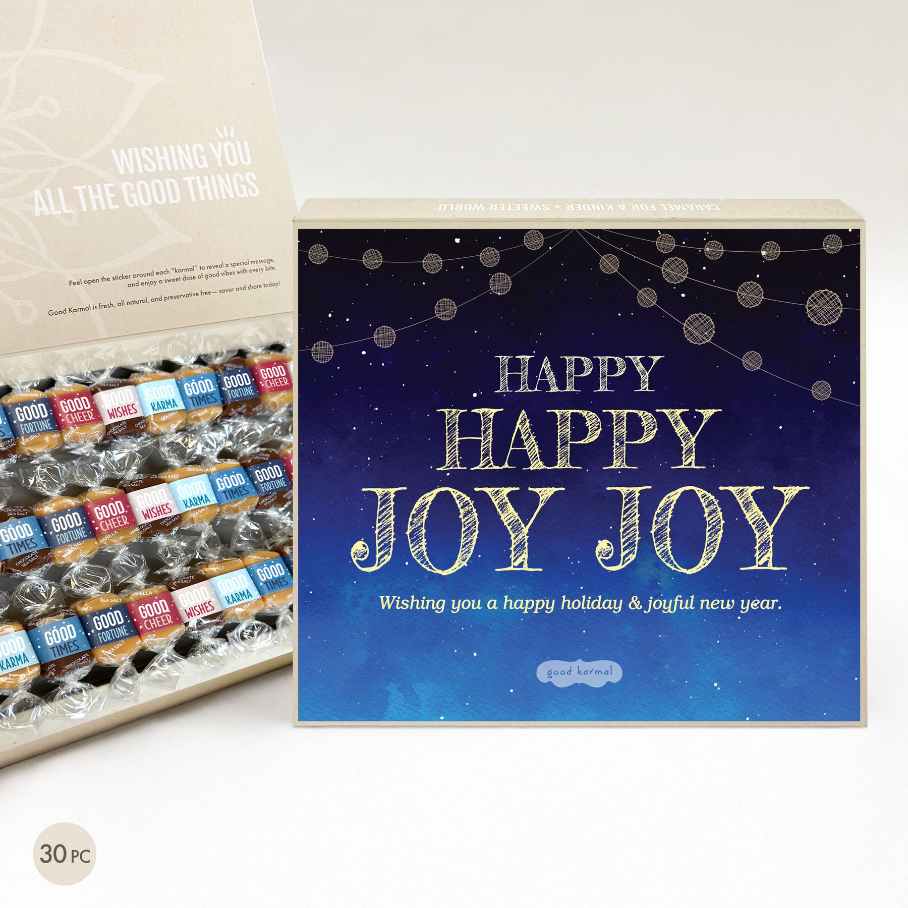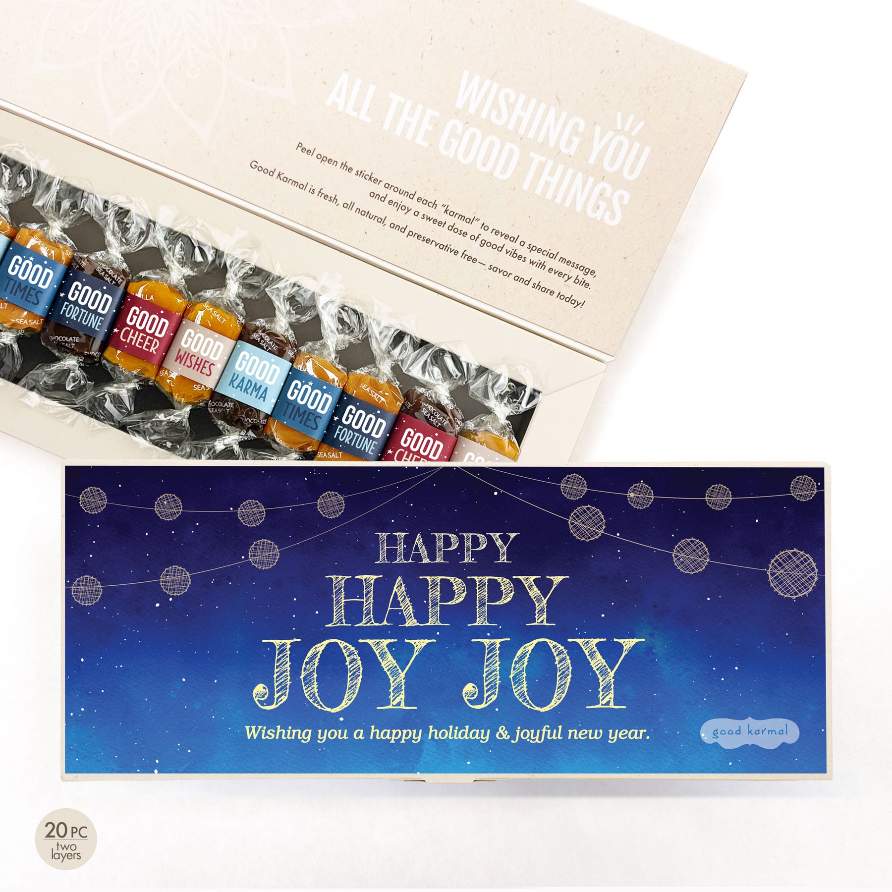 So nice, you had to say it twice! Wish them happiness and joy twice over this holiday season. Designed to delight, each festive box is packed with uplifting quotes and buttery caramel.