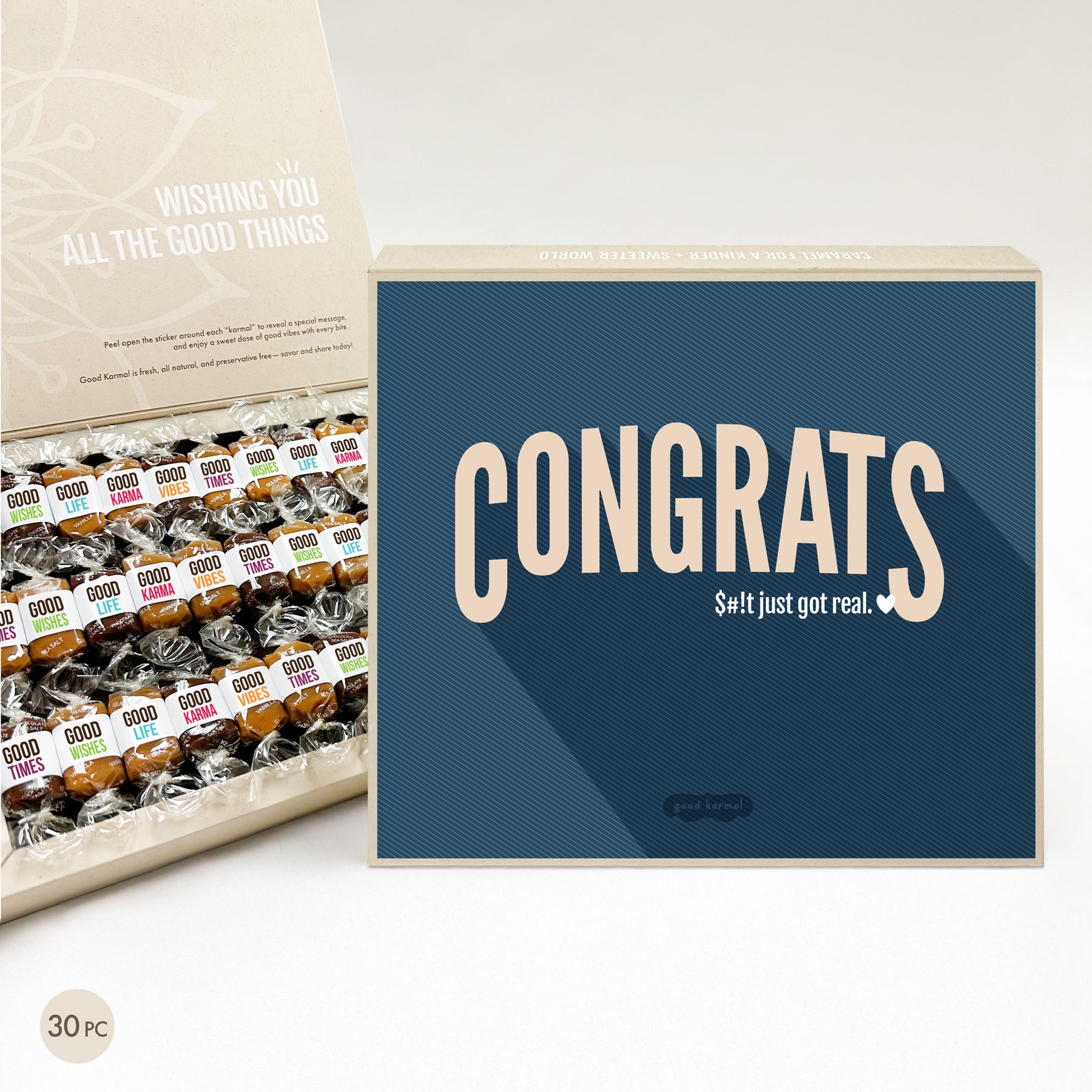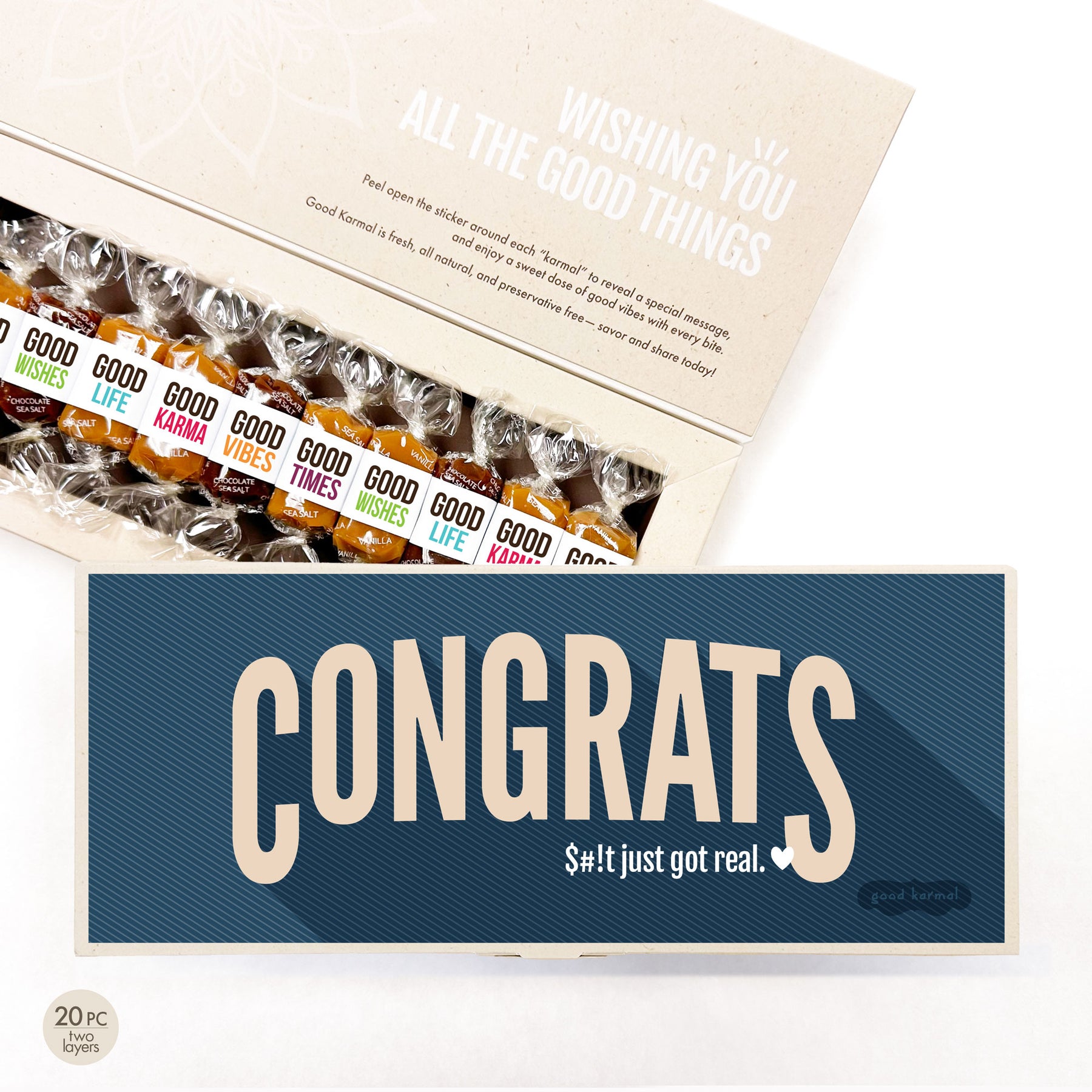 For the moments that are equal parts exciting and whoa, this is happening, this gift box brings humor, heart, and something seriously delicious. Made for big news, big changes, and everything that comes next, it's a sweet way to say you did it (and you’ve got this) with a little cheek. Perfect for graduations, promotions, weddings, new bundles of joy, and all the moments where life levels up.