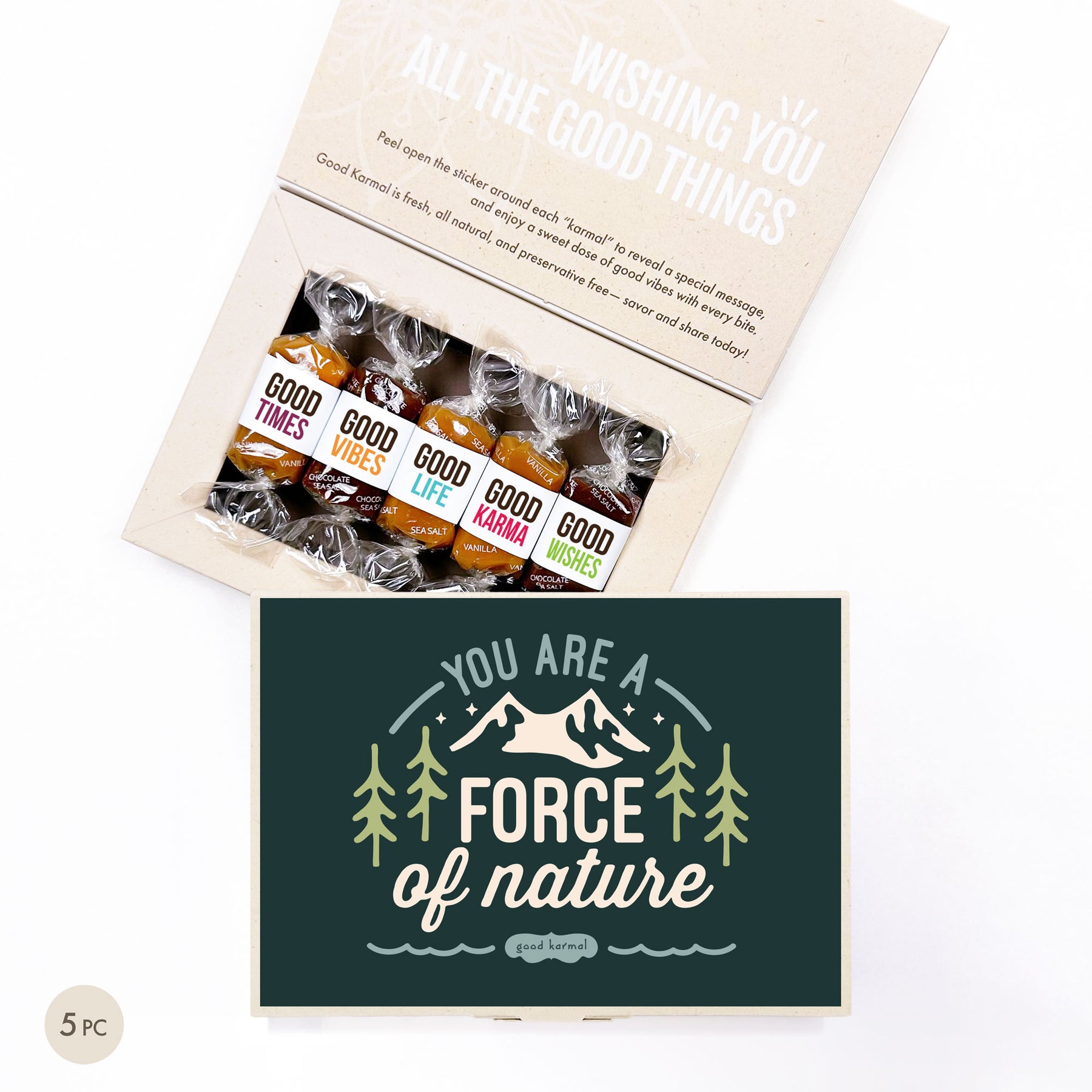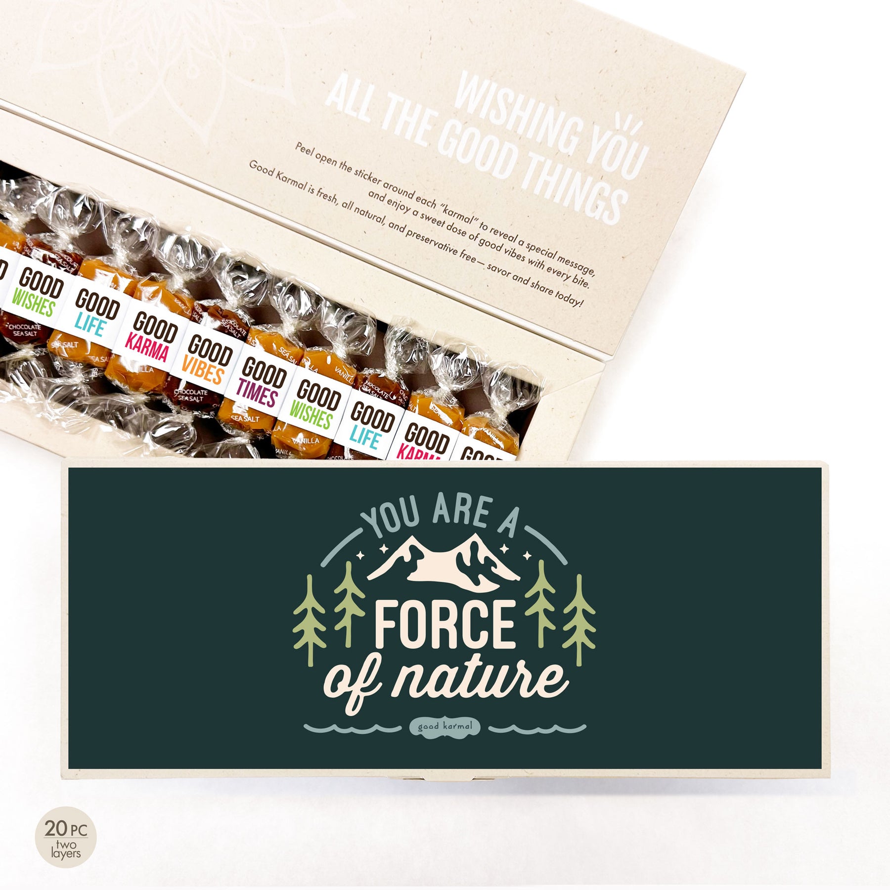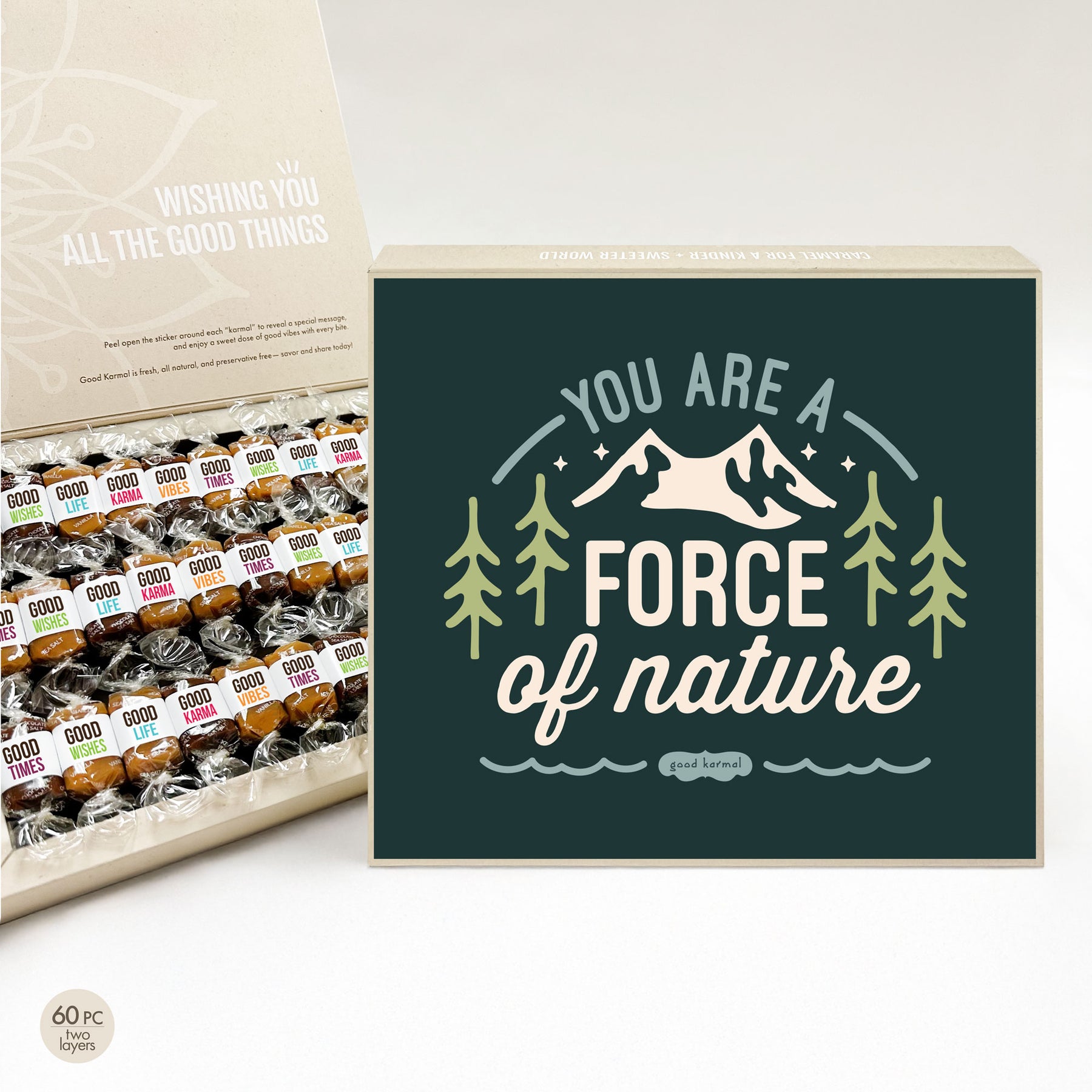 Celebrate someone whose impact is anything but ordinary. Being a force of nature is about being unforgettable and undeniable, about inspiring without even trying. It’s for the person whose presence matters — at work, at home, in friendships, in all the spaces they show up. Filled with our gluten-free signature gourmet, buttery caramel, the Force of Nature Caramel Gift Box is bold, joyful toast to those too impossible to ignore.